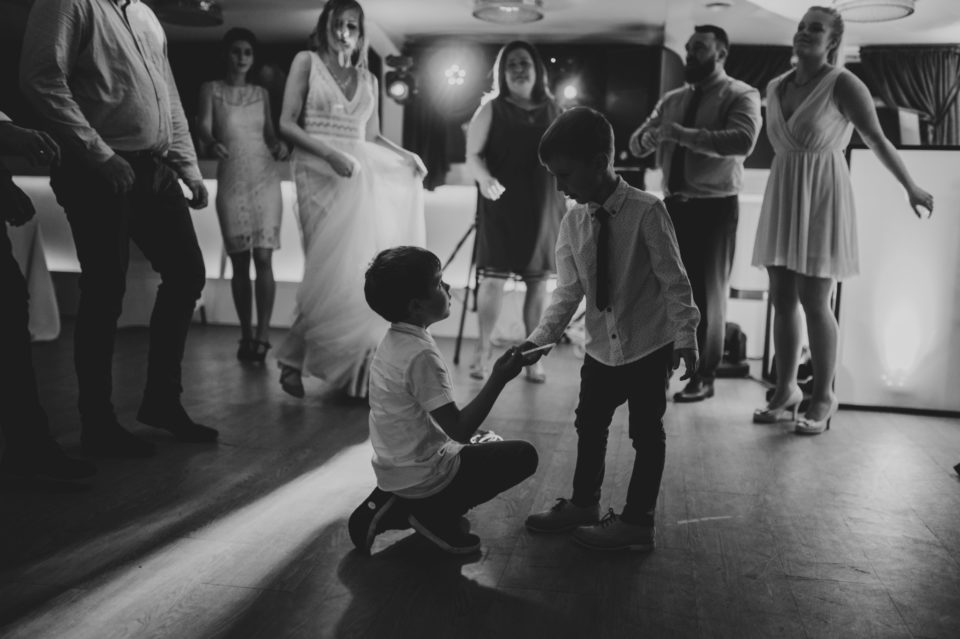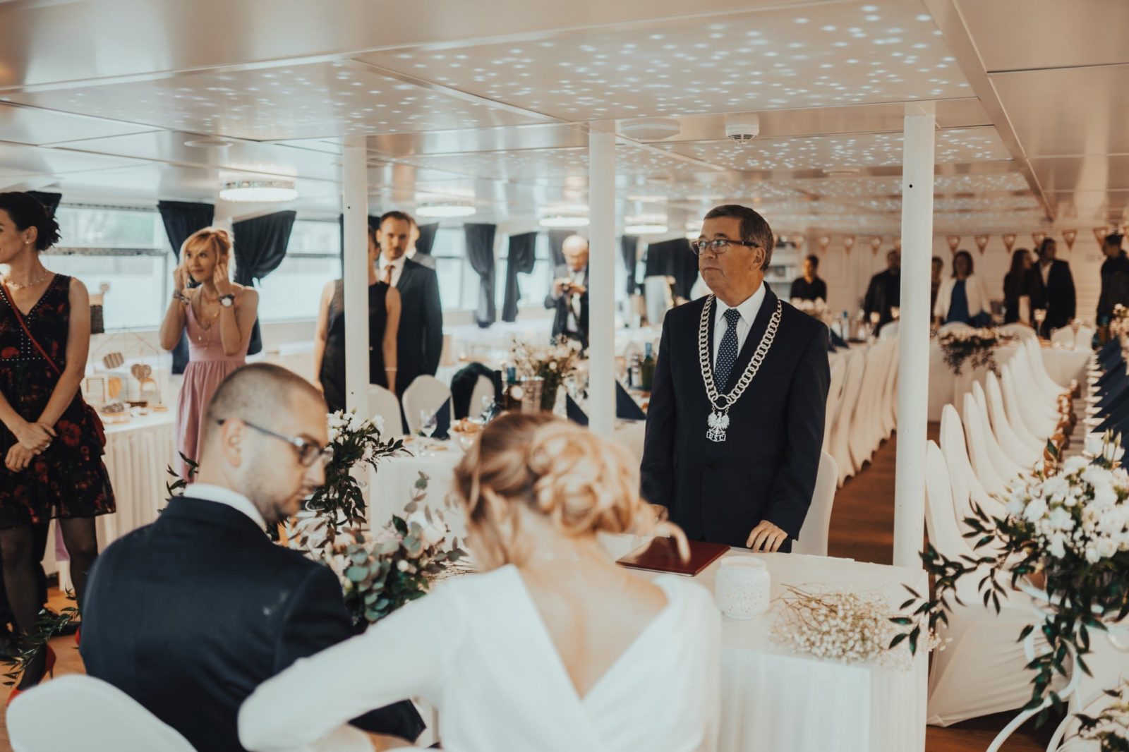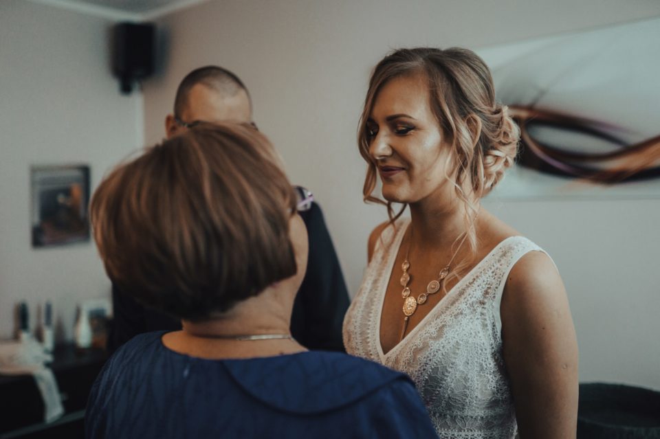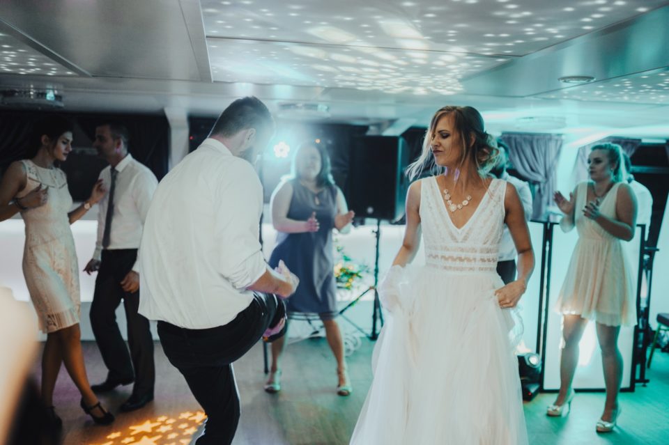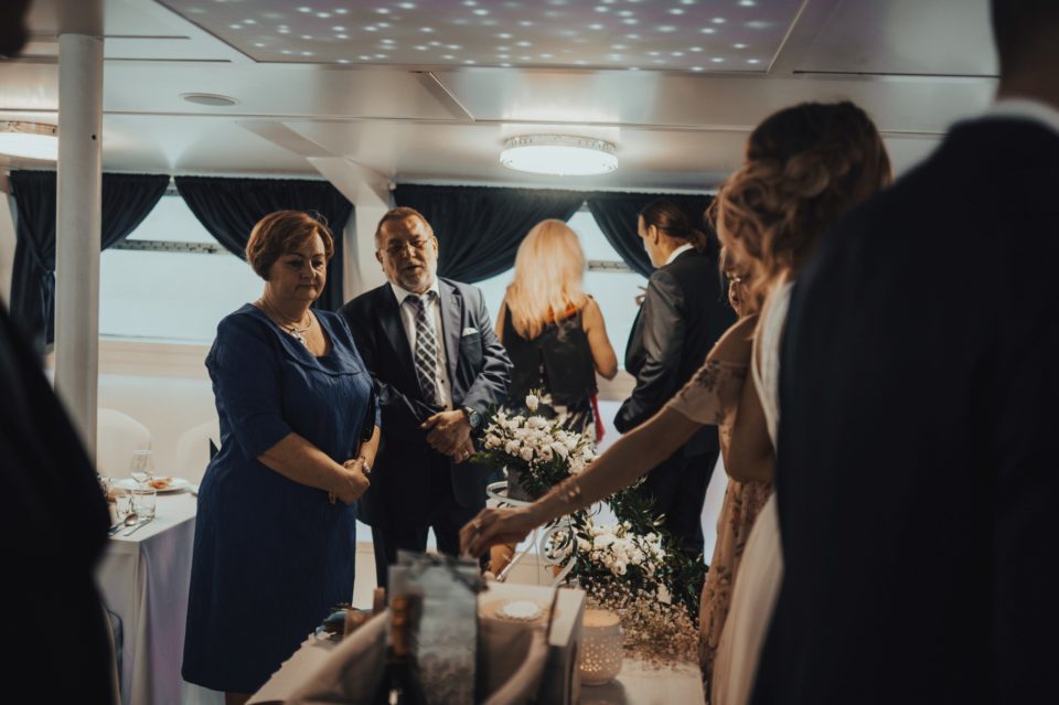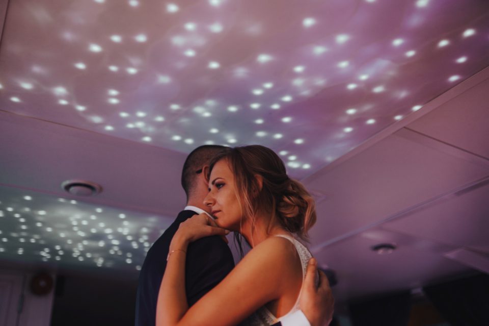 Zapraszam Was do wielkiej przygody! Linda i Mateusz to fani adrenaliny. Ogromni wielbiciele wszystkiego, co związane z motocyklami. To co było piękne – mimo znaczących opadów deszczu, na tą okazję zjawiła się grupa znajomych pasjonatów, do których należą! Wystarczyło jedno ogłoszenie na ich grupie Facebookowej, i rajd po ulicach Wrocławia zaczął się na dobre! Nie mogłem odpuścić takiej okazji, i zrobiłem zdjęcia nawet, gdy jechaliśmy na miejsce ślubu. Taka obstawa robiła ogromne wrażenie! Ze względu na opady, ślub z scenerii plenerowej, musiał być przeniesiony na miejsce wesela. A miejscem tym był statek Wratislavia, płynący po rzece we Wrocławiu! Był to mój pierwszy raz w takich okolicznościach, i wrażenia z rejsu są naprawdę niesamowite! Pewnie sami potraficie sobie wyobrazić, jak piękne były to miejsce na takie wydarzenie… Cała sala była przepięknie wystrojona, a jedzenie wyśmienite. Zabawą do rana zajął się Dj Rafał Wojdat, który puszczał jedne z moich ulubionych utworów! Główka mi latała na boki przez cały czas! Sami zobaczycie, że nie tylko mi